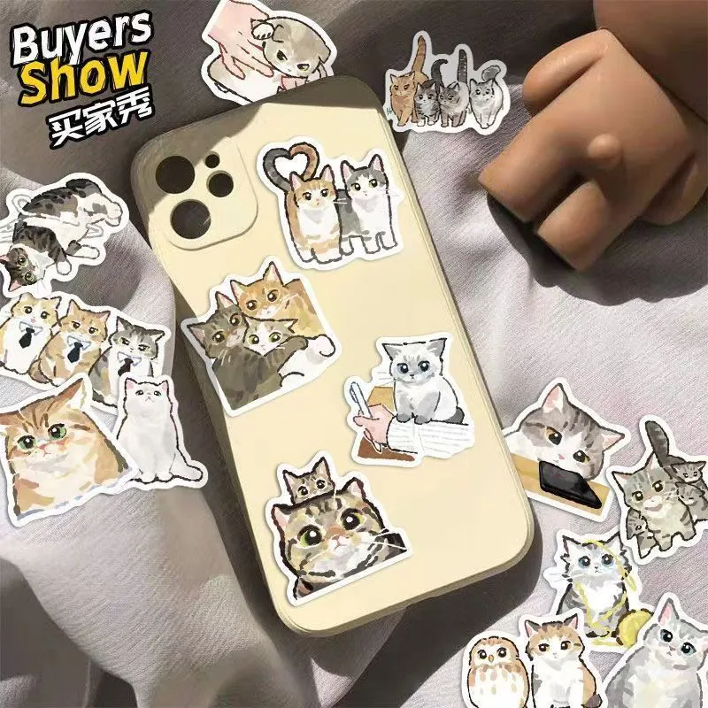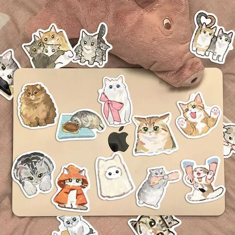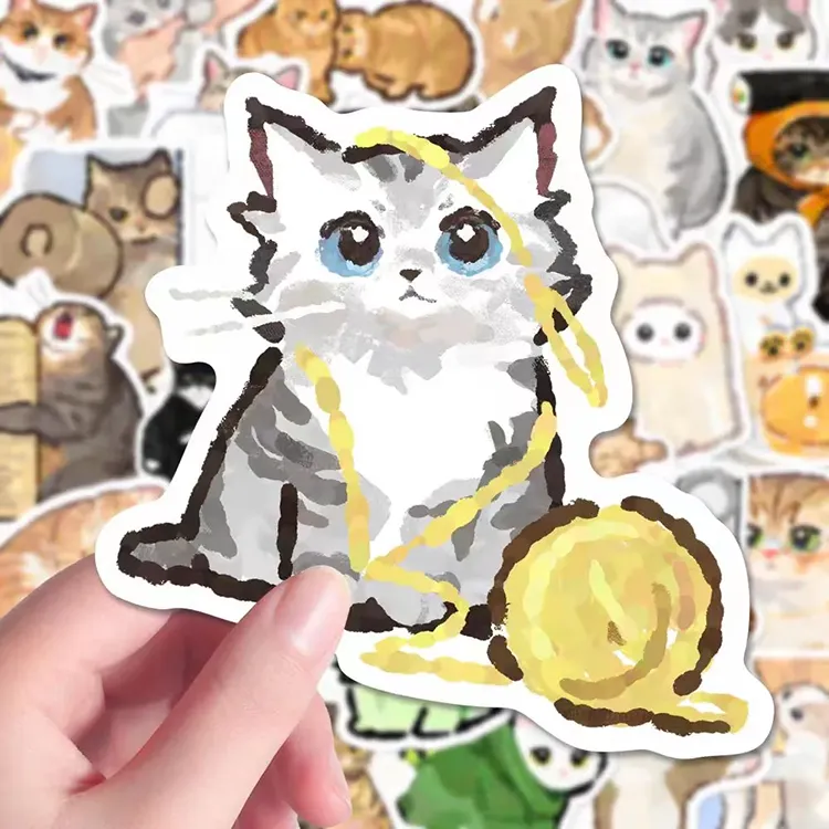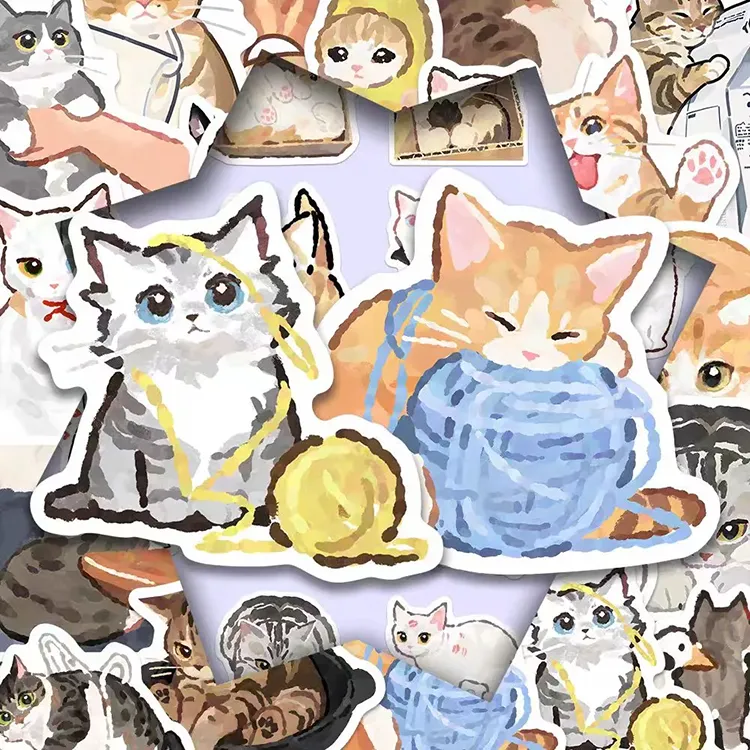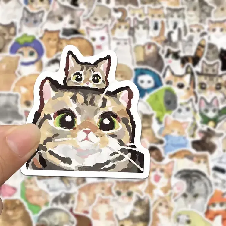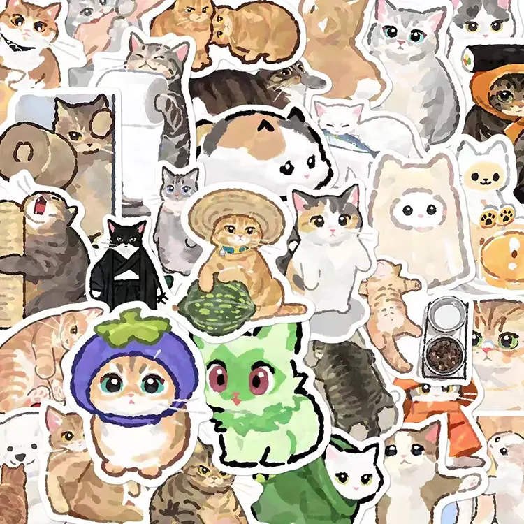 Sa réimse tráchtála, is uirlisí maithe poiblíochta agus pacáistithe iad greamáin ainmhithe cartúin. Is féidir le ceannaithe iad a thabhairt mar bhronntanais chur chun cinn nuair a bhíonn custaiméirí ag siopadóireacht chun tomhaltóirí a mhealladh, go háirithe aird leanaí. Is féidir leo greamáin cat a ghearradh go beacht freisin agus iad a úsáid le haghaidh pacáistiú táirgí, mar shampla iad a ghreamú ar phacáistiú stáiseanóireacht, bréagáin agus sneaiceanna chun cuteness agus aitheantas táirgí a mhéadú.