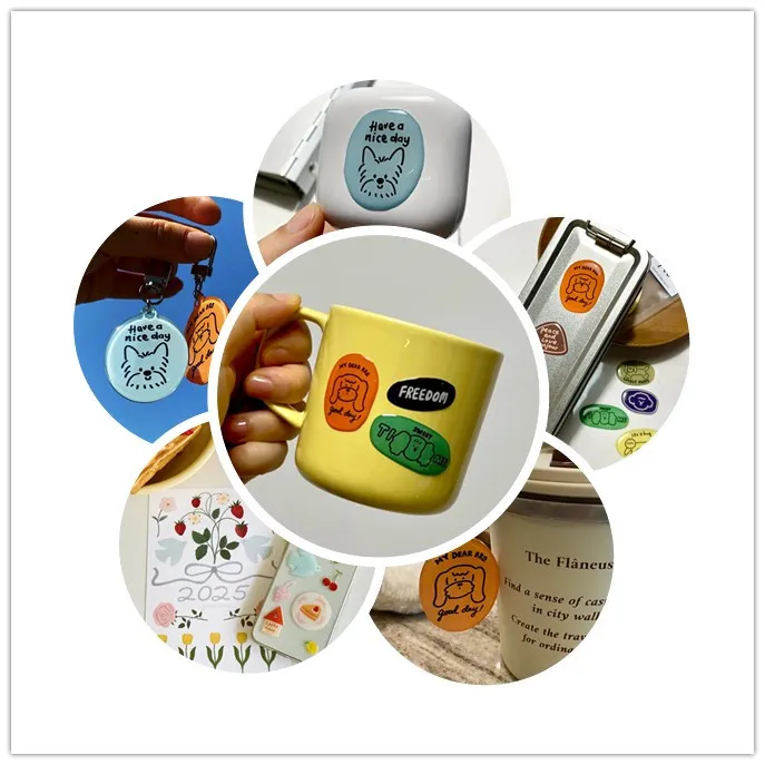 Greamáin roisín eapocsa cartúinAiríonna cosanta láidre a bheith agat, a bheith uiscedhíonach, cruthúnas taise agus frithsheasmhach in aghaidh creimthe ceimiceach. Ní théann na patrúin agus an téacs céimnithe ná ní bhíonn siad doiléir. Cloíonn sé go daingean, tá sé cobhsaí le bata milis, agus ní thiteann sé as nó ní thógann sé imill le linn úsáide laethúla. Tá an dath cobhsaí agus níl sé i mbaol buí fiú tar éis úsáide fadtéarmacha. Is féidir le custaiméirí a roghnú freisin chun iad a chur i dtacar. I ngach tacar tá sonraíochtaí agus patrúin éagsúla de fhéin-ghreamaitheacht ghreamaitheach criostail. Cibé an bhfuil sé le haghaidh lipéadú táirgí olltáirgeachta nó le haghaidh lámhdhéanta cruthaitheach, is féidir leis freastal ar do chuid riachtanas agus do chuid fadhbanna úsáide lipéid a réiteach i stad amháin.