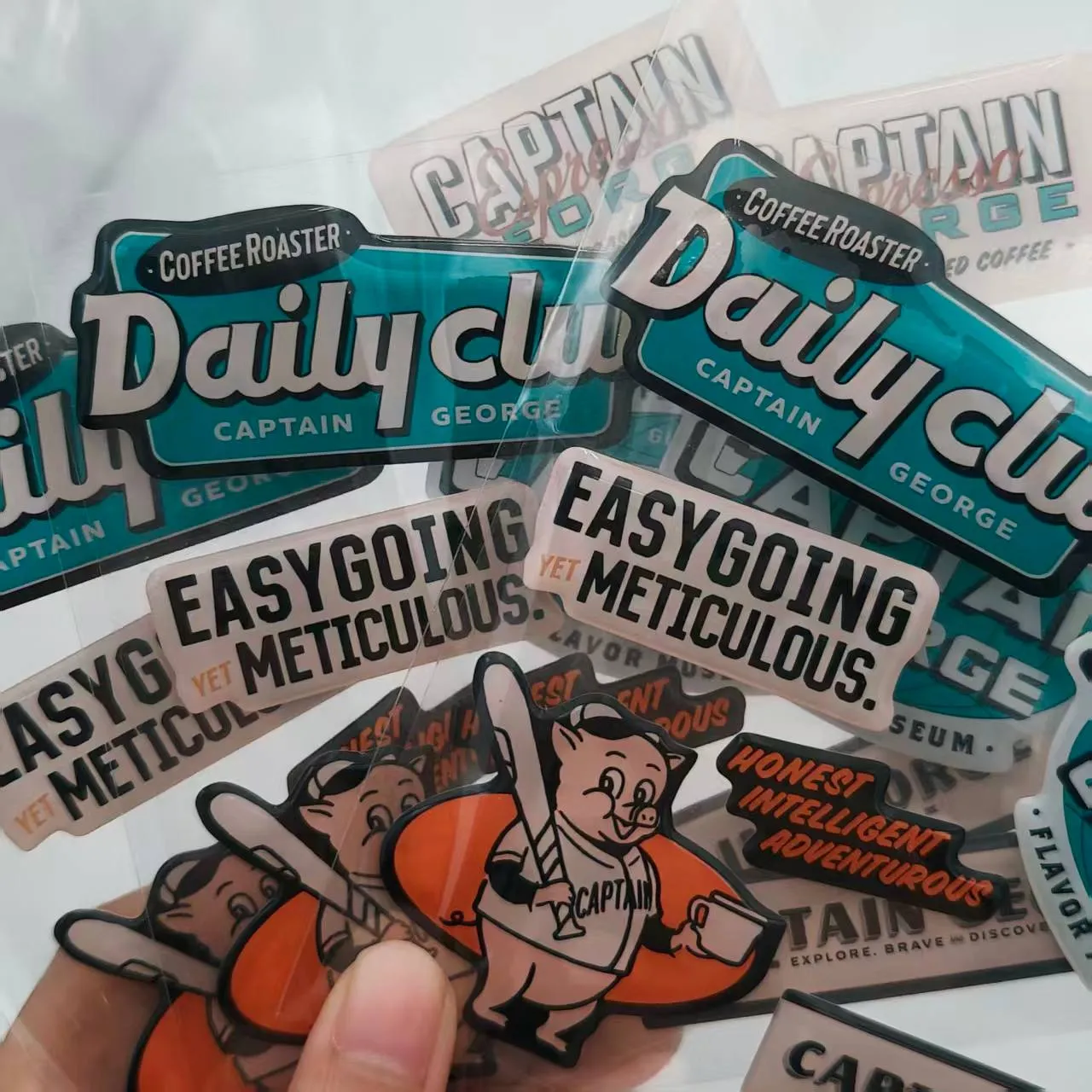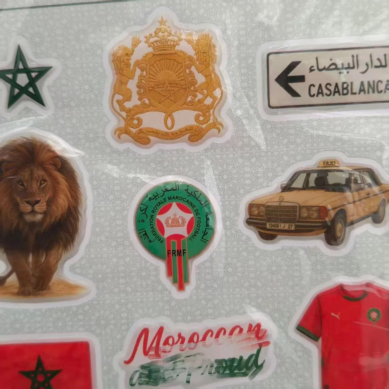 3D: A bhuíochas leis an gciseal soiléir roisín eapocsa a chuirtear i bhfeidhm ar an dearadh clóite, tá cuma ardaithe tríthoiseach ar na greamáin seo. Cuireann sé seo doimhneacht thadhlach agus amhairc nach féidir le greamáin árasán a mheaitseáil, rud a fhágann go bhfuil siad níos suntasaí le sracfhéachaint.