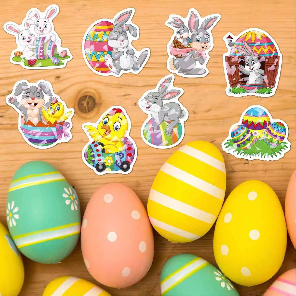 Oiriúnach d'úsáidí éagsúla na Cásca: greamáin bheaga d'uibheacha nó sliogáin seacláide, meánmhéid do bhoscaí bronntanais agus ciseáin, agus mór le haghaidh taispeántais fuinneoige. Baintear go héasca gan iarmhar ó dhromchlaí cosúil le gloine, plaisteach nó adhmad.