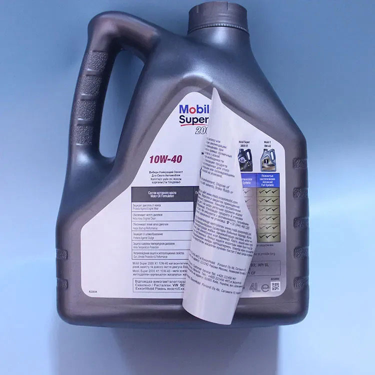 Greamacháin Aicrileach:Úsáidtear iad seo chun an lipéad a nascadh leis an buidéal ola mótair. Caithfidh siad a bheith frithsheasmhach in aghaidh olaí agus tuaslagóirí lena chinntiú go gcloítear leis an lipéad le himeacht ama.