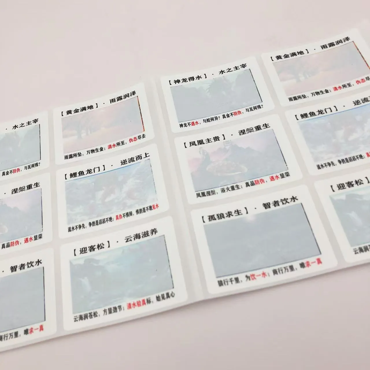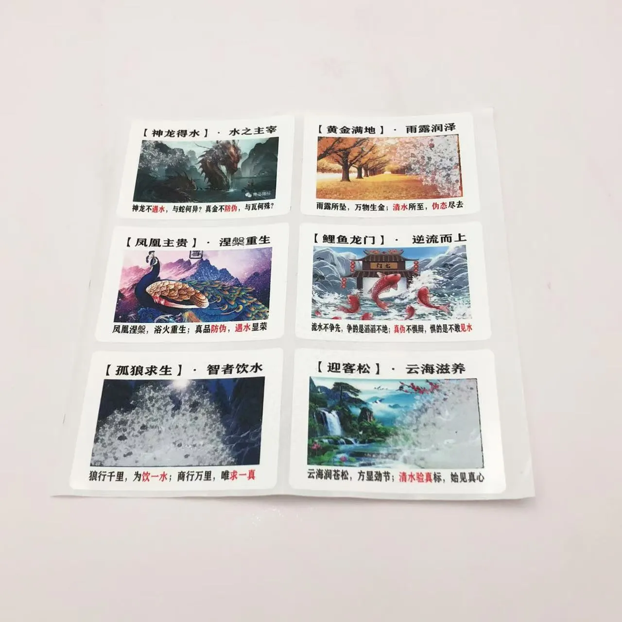 A lipéid uisce-íogairábhar cliste clóite le struchtúr dúch speisialta uisce-bhunaithe. Nuair a bhíonn siad faoi lé uisce nó leachtanna trédhearcacha eile, déanann siad seo an taise a ionsú go tapa, rud a fhágann go n-éiríonn an lipéad beagnach trédhearcach laistigh de thart ar 1 soicind - ag nochtadh patrúin nó téacs ceilte. Tar éis don leacht evaporates, is féidir le roinnt cineálacha cártaí filleadh ar a staid bhunaidh lena n-úsáid arís agus arís eile.