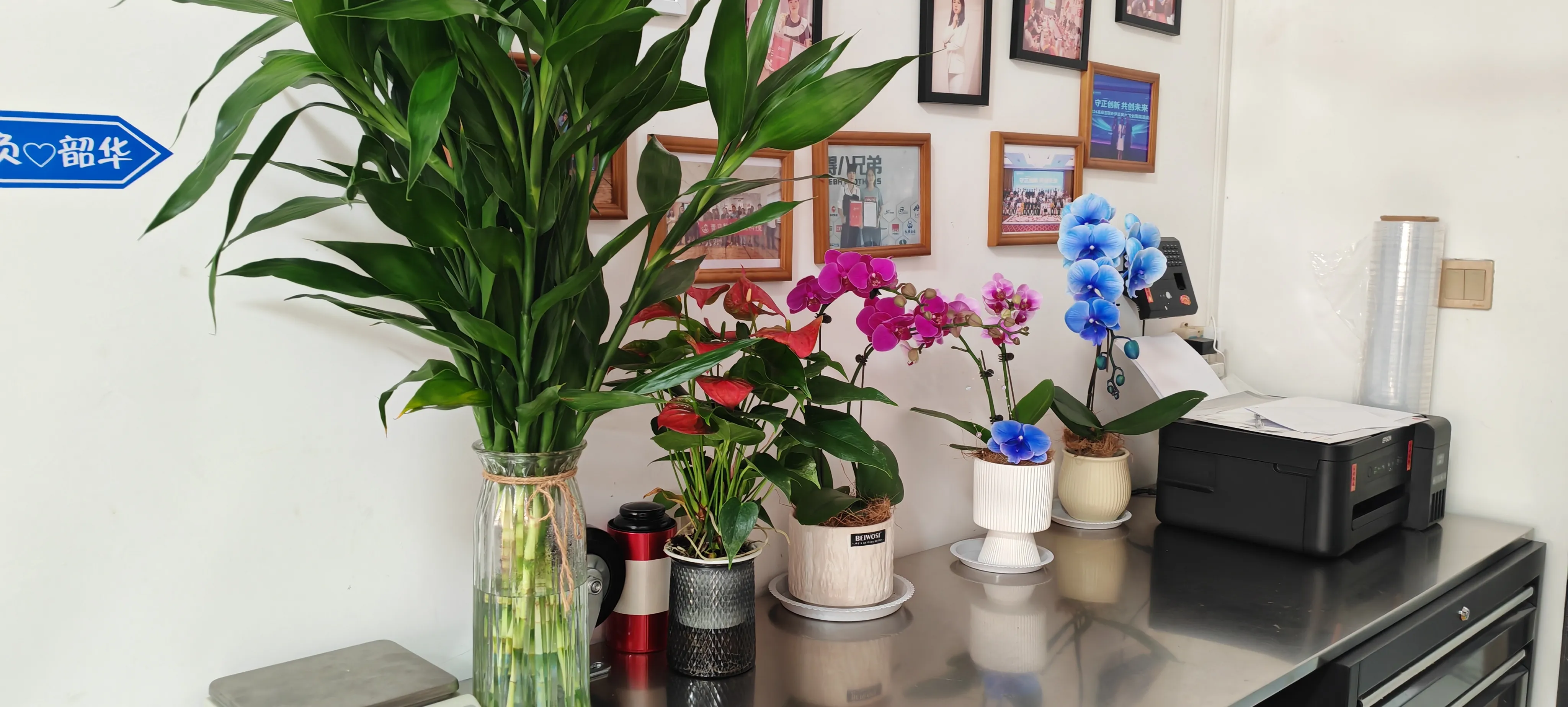 Dúirt Ms. Men, an bainisteoir trádála eachtrach, le gáire: "Bhí an timpeallacht oifige glan roimhe seo, ach ní raibh tuiscint ar nádúr ann. Anois le maisiú na bláthanna agus na plandaí glasa seo, tá an spás iomlán tar éis éirí bríomhar. Ag féachaint ar na plandaí glasa le linn sosanna oibre, is féidir le mo shúile scíth a ligean freisin. " Mothaíonn cúram an boss do gach duine teas na cuideachta. Táimid níos mó spreagtha chun oibre. Le linn sosanna lóin, is féidir linn aire a thabhairt do na bláthanna agus na plandaí le comhghleacaithe freisin, rud a chuireann go leor spraoi leis.