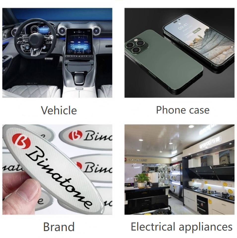 Éifeacht uathúil tríthoiseach: Trí phróiseas speisialta, cruthaítear cruinneachán polúireatán dronnach ar dhromchla an ghreamáin, ag cur éifeacht 3D criostail-soiléir agus steiréascópach i láthair, rud a fhágann go bhfuil an patrún ar na lipéid eapocsa bhabhta níos beoga agus níos tarraingtí, ag feabhsú an achomharc amhairc.
