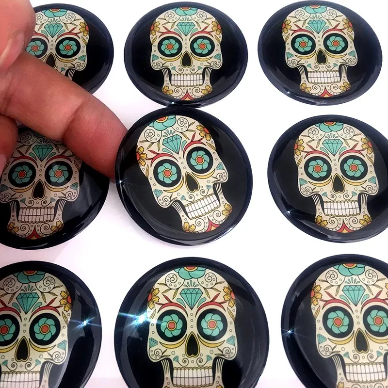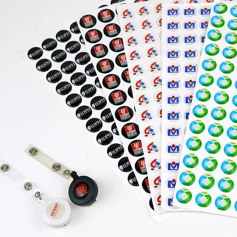 Maidir le cruth: Chomh maith leis an gcruth cruinn, is féidir lipéid eapocsa bhabhta a oiriúnú freisin i gcruthanna eile amhail ubhchruthach, dronuilleog, agus cearnóg. Ina theannta sin, is féidir é a phriontáil le patrúin, téacsanna, lógónna, srl. Trí phriontáil scáileáin síoda, priontáil fhritháireamh, priontáil dhigiteach agus próisis eile chun freastal ar riachtanais phearsantaithe éagsúla.