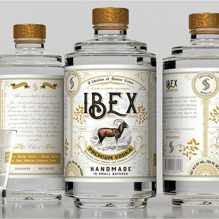 Ábhair speisialta:Chun saintréithe an bhranda a aibhsiú, is féidir le húinéir an bhranda ábhair speisialta a úsáid, amhail scragall, páipéar cabhraithe nó ábhair adhmaid. Is féidir leis na hábhair seo eispéireas uathúil amhairc agus tadhlach a sholáthar do na buidéil vodca.